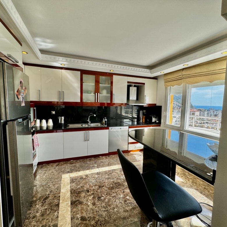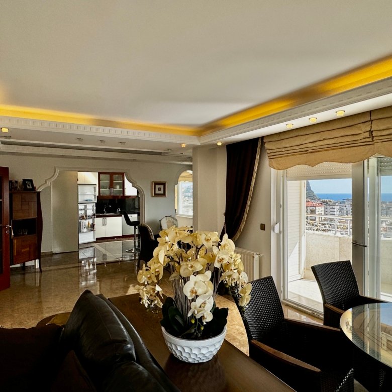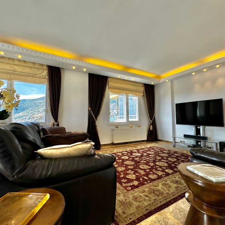 Located in one of Alanya’s most prestigious central areas, this spacious 5+1 fully furnished apartment offers breathtaking castle and sea views.