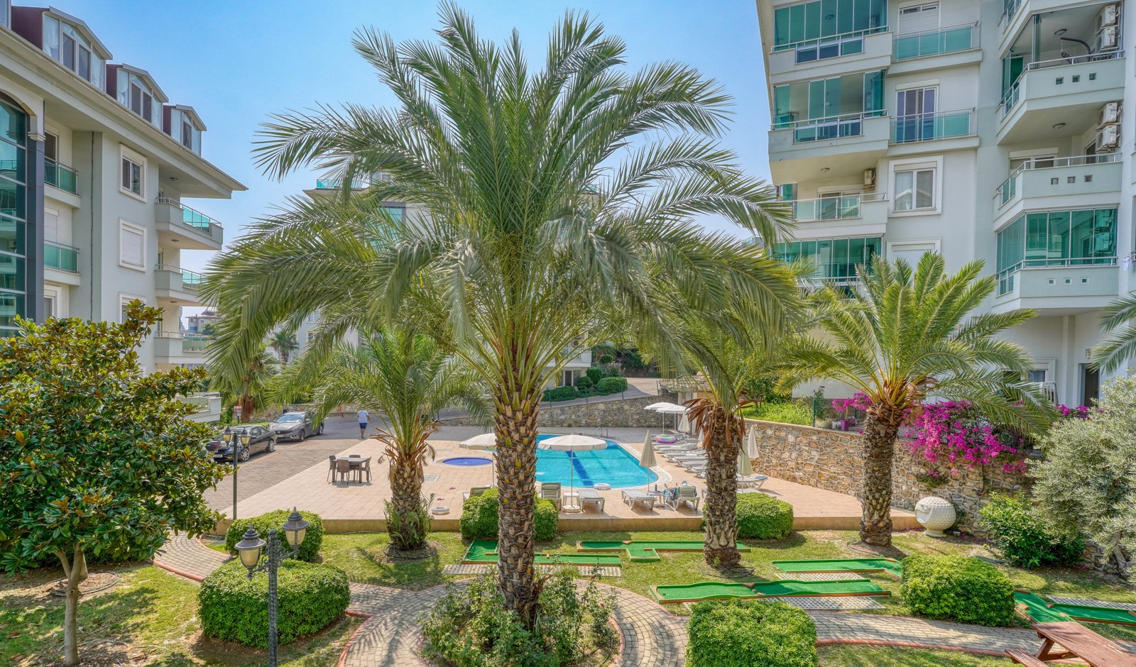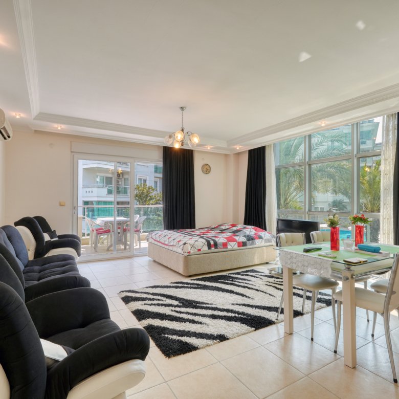 FURNISHED 1+1 APARTMENT WITH GARDEN IN A FULL FACILITY COMPLEX IN ALANYA OBA