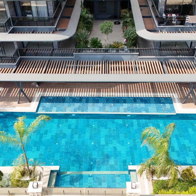 Located in Hasbahçe, this luxury furnished 1+1 apartment offers a premium lifestyle with full resort-style facilities.