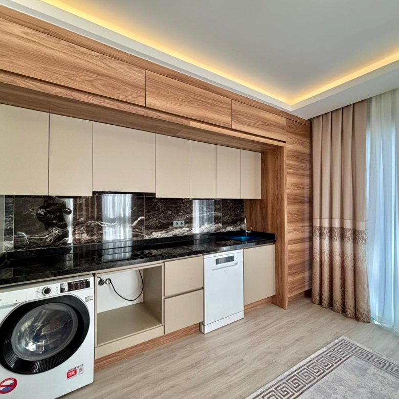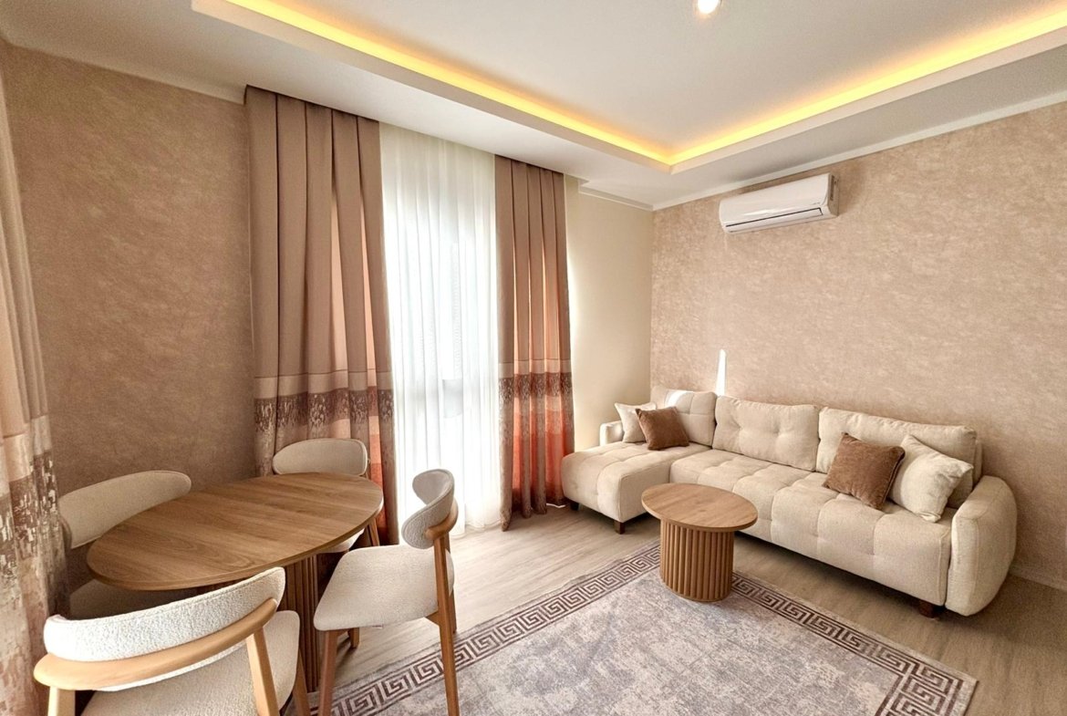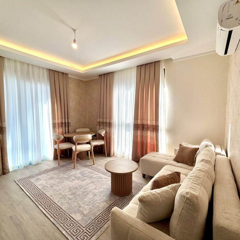 This stylish 1+1 apartment located in a new building in Mahmutlar, Alanya offers modern living with brand new luxury furniture. With its east-facing position, the apartment enjoys natural morning sunlight and is ideal for both living and investment.