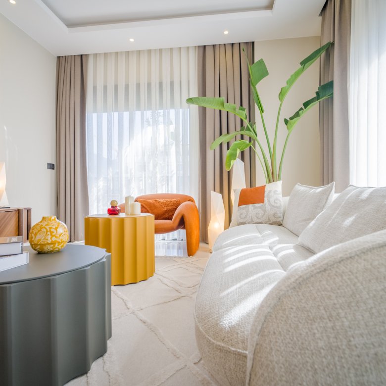 With a total area of 120 m², the apartment is fully furnished and carefully designed with modern architectural details.